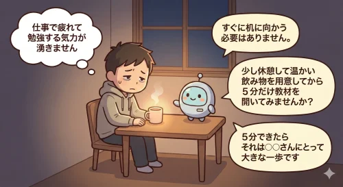 - 仕事で疲れ果てた夜、勉強する気力が湧かないとき。